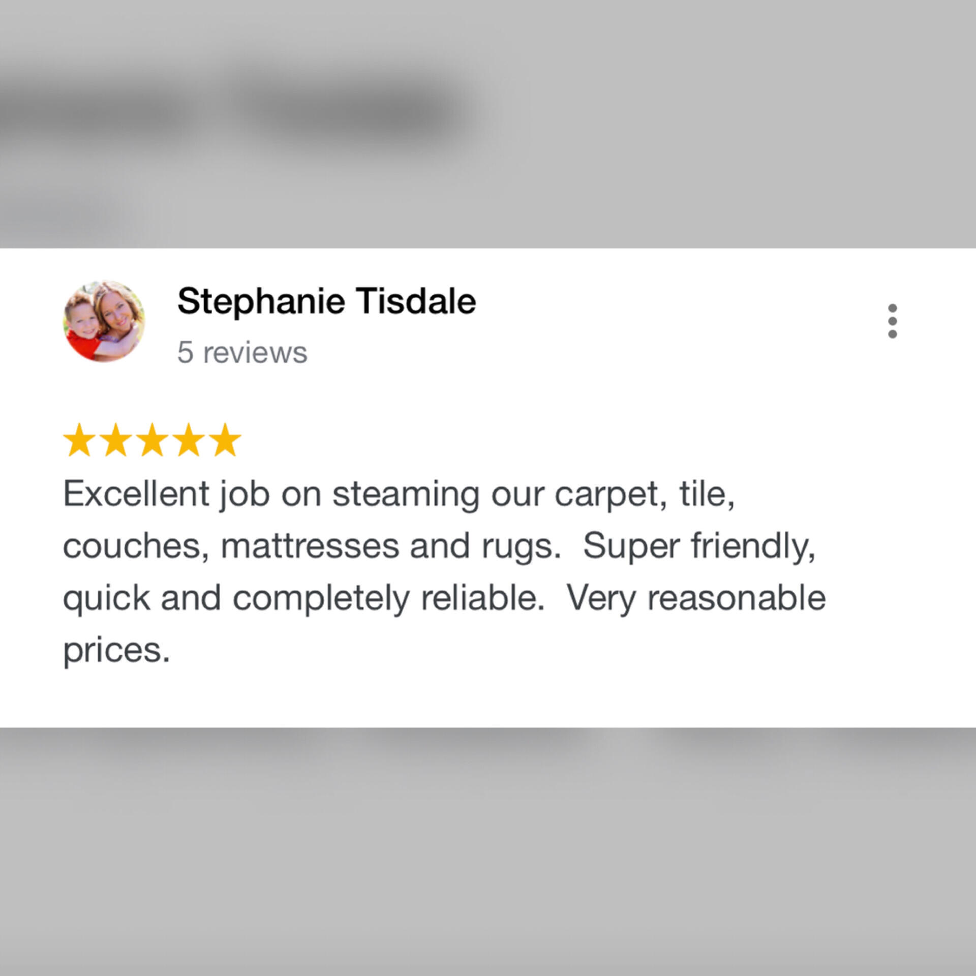 We do not use harsh chemicals to steam clean your carpet and there is no harmful dirt attracting residue left behind.